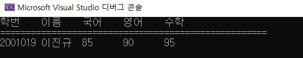 cout << "학번\t이름\t국어\t영어\t수학\n";