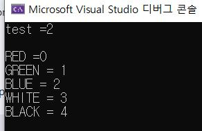 //열거형 변수 test에 {}안의 멤버 중의 하나인 BLUE를 지정