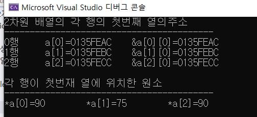 cout << "2차원 배열의 각 행의 첫번째 열의주소\n";