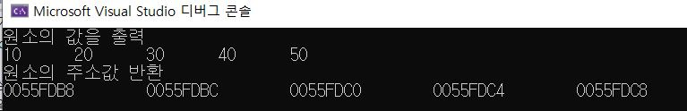 배열명에 +연산을 해서 값을 구한 주소에 * 연산자를 붙여 배열의 각 원소값을 출력하는 프로그램이다.