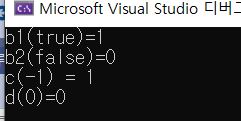 C++에서는 0이 아닌 수치데이터는 true로 인식되고 0은 false로 인식
