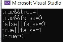 cout << "true||false=" << istrue << "\n";