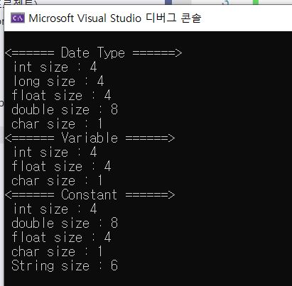 cout << "\n char size : " << sizeof(char);