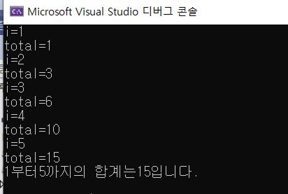cout << "1부터" << i - 1 << "까지의 합계는" << total << "입니다." << endl;